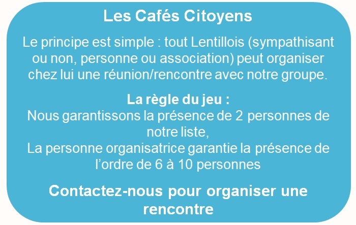 Vous souhaitez organiser un café-citoyens pour nous rencontrer et discuter, contactez-nous pour voir comment-faire et trouver une date.